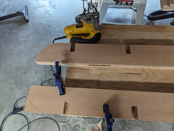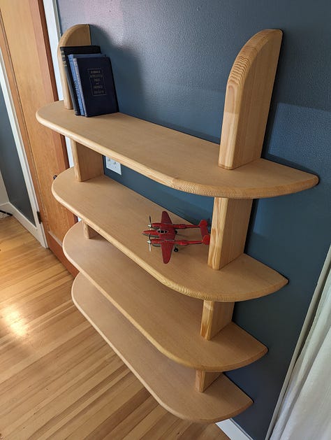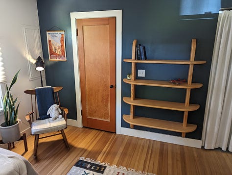 ProjectsBuilt-in book shelvesSomething sturdy to handle the weight of all these baby booksSep 09, 202311ShareTested dimensions/sizing and mocked up in SketchUp220+ year old Doug Fir from Crosscut HardwoodsRounded corners and edges to avoid clipping the shelves accessing the bathroom/closet, and for door swing spacePreviousNext