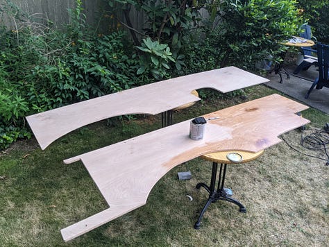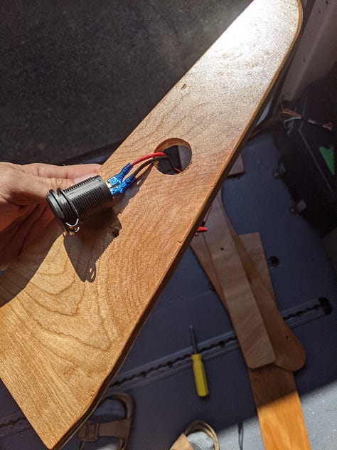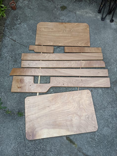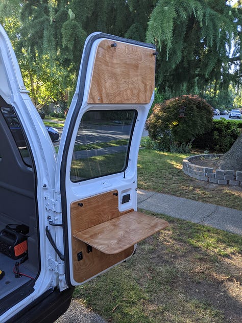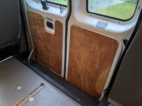 Using the existing vinyl paneling as templates, new 1/2" birch plywood paneling was added throughout.