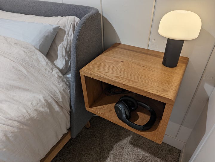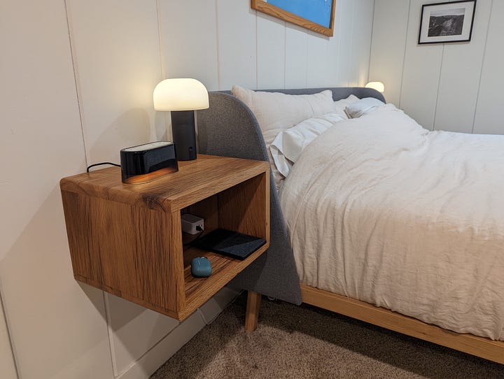 ProjectsFloating bedside tablesOct 03, 2023ShareReclaimed 1" oak from Ballard reuseRechargeable Mushroom lamps: https://amzn.to/3Q1XzxlPreviousNext